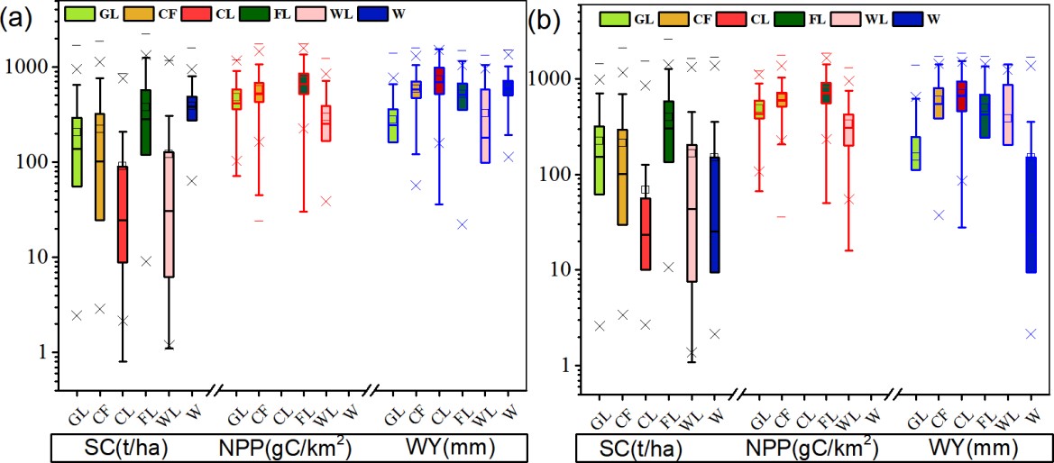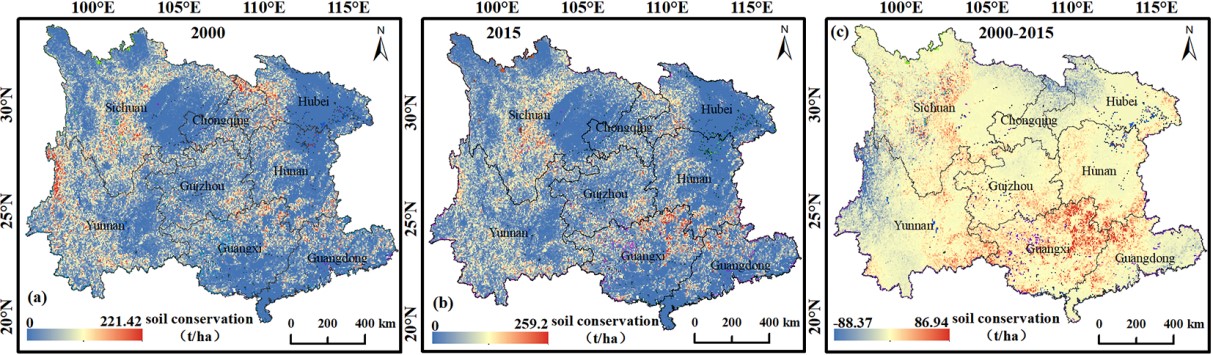了解多种生态系统服务(ES)的空间分布,不同生态服务类型的联系及其环境因素变化带来的影响对于ES管理至关重要。因此,本文基于GIS空间分析技术和INVEST模型,对研究区的土壤保持、产水量和植被净初级生产力(NPP)的时空变化特征进行了分析,并探讨研究区生态系统服务功能之间权衡与协同关系及影响因素。
