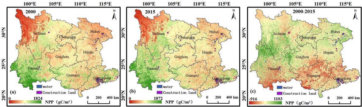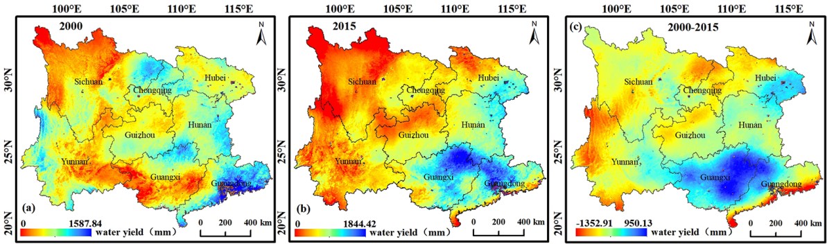 研究发现:(1)研究区2000~2015年各生态系统服务功能均呈现增加的趋势,NPP、产水量、土壤保持分别增长7.06%、0.86%和5.55%。林地对NPP和土壤保持的贡献率最大,分别为51%和59%。产水量最高值来源于林地,但耕地贡献了49%的产水量。(2)不同土地利用类型间,NPP、土壤保持、产水供给能力最强的地类为耕地和林地。五大地类中产水量与NPP之间以权衡关系为主,NPP与土壤保持呈协同关系。土壤保持与产水量在耕地中表现为协同关系,然而在林地、草地、湿地和未利用地中则以权衡关系为主。(3)2000~2015年生态系统综合得分提高了23.3%,说明通过实施的生态修复工程取得了良好的生态效益,研究区生态状况逐步改善。(4)研究区多重生态系统服务热点区主要分布于西南部与东南部,该区域主要以非岩溶生态系统为主,林地提供了最多的生态系统服务,超过50%的区域为无生态系统服务热点区域,该区域主要为岩溶地区。
