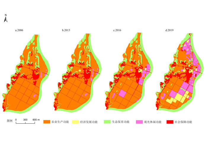 土地是人类社会经济活动的载体,体现一个地域的特点,土地利用是人类与自然环境长期相互作用的结果,是一个时空演变动态的过程。土地利用功能与土地利用存在着密切关系,土地利用变化影响土地利用功能转变。随着时间的发展,土地利用功能在不同尺度的空间上表现出明显的地域差异性,是乡村转型发展的缩影,也是城郊乡村升级转型研究的重要问题,受到广泛关注。探究城郊乡村土地利用功能演变过程,是深入理解城郊乡村转型和人地系统耦合协调的演变机理关键所在。