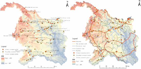 成果简介:风景道是喀斯特地区旅游业、交通运输业融合发展的新形态,研究风景道选线对促进喀斯特地区景观资源合理利用与可持续发展具有重要意义。以滇桂黔喀斯特石漠化区南北盘江流域为例,选取景观视觉质量、生态适宜性、交通便捷性与资源点可达性4个维度16项因子构建风景道选线评价指标体系,基于最小累计阻力构建综合阻力表面模型,并结合源地进行最优路径模拟及选线规划。研究表明:(1)受地形地貌、交通网络及资源点的影响,南北盘江阻力空间分布格局整体上呈“中间低四周高”特征,低阻力区主要围绕一级景点与交通网络分布在流域中部,而高阻力区分布在流域东南及西北方向。(2)以273个景点作为生态源地,共生成494条生态旅游廊道,生态廊道重要程度总体上呈现出“中部高四周低”的分布态势。(3)构建的南北盘江流域喀斯特风景道整体呈现环形网络状,分为喀斯特山水民族风情风景道和喀斯特避暑三线文化风景道。以期为我国喀斯特山区风景道的规划建设提供借鉴。