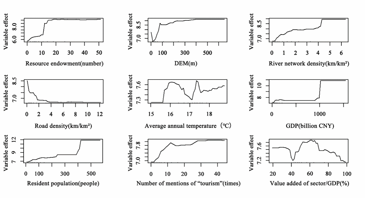 Fig 7. Map of how influencing factors contribute to the distribution of high-level Class A tourist attractions