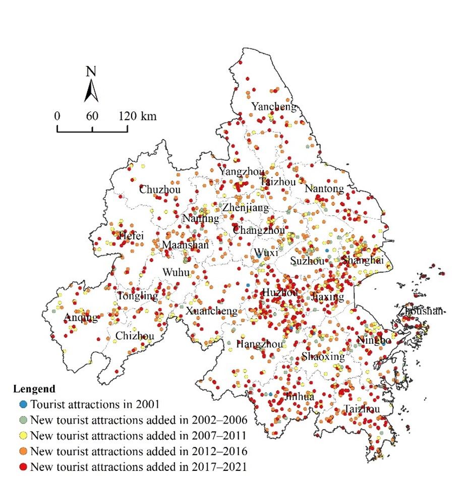 研究成果:Spatiotemporal differentiation and driving mechanisms of high-level Grade A tourist attractions in the Yangtze River Delta City Cluster