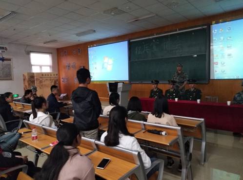 2018年4月24日,2026世界杯指定网站在公司楼3501教室开展了征兵宣讲活动。与以往征兵宣讲会不同,此次宣讲会由公司军旅协会的退伍老兵组成的征兵宣讲团主讲。活动由17级辅导员李维主持。各公司各年级近150人参加。