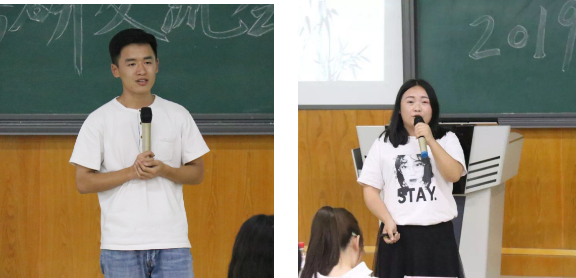 主持人做了简要介绍后,随后进入主题,由学姐学长们依次发言。第一部分是经验分享环节。李芳回顾了自己的考研经历,着重讲解了心态调适的重要性,认为坚持有时比能力更重要。彭大为重点分享了基础复习,反复巩固,强化提高三个阶段的学习侧重点,并提醒大家把握好暑假的时间,提高效率,及时调整心态,努力到底。罗雅雪着重保研的要求和途径进行了讲解,建议大家严格要求自己,把握好时间进度,养成良好的习惯。张思琪向大家介绍了当前保研推免的新形势,分别从择校、关注动态、材料准备等几个方面为同学提出了良好建议。张倩从个人能力、未来计划、心仪导师入手,讲解了每门科目的学习方法,并强调专业课的重要性,详细讲解了考研时间线、笔记、心态等注意事项。保宏运分享了自己考研和择校的一些经历,并从复习计划,专业课备考等方面给出自己的建议。
