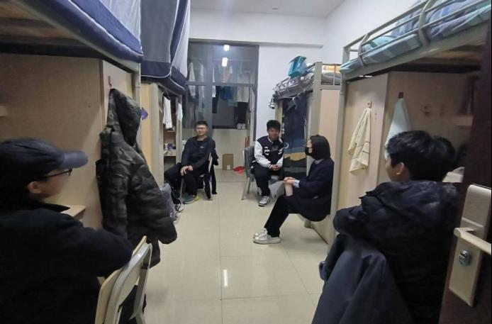 通过深入寝室,老师们及时的了解到了员工的生活状态、复习情况,切实的疏导了员工因考试来临产生的心理压力。由于天气变化较为剧烈,老师们叮嘱员工注意保暖,切勿使用违规电器。为了让员工有一个更安全舒适的生活、学习环境,老师们不断倾听员工的心声和建议,力所能及的为员工解决疑惑,调解矛盾。同时,鼓励和引导员工通过共同缔结寝室公约等形式,维护好寝室环境,营造积极向学、共同进步的良好氛围。