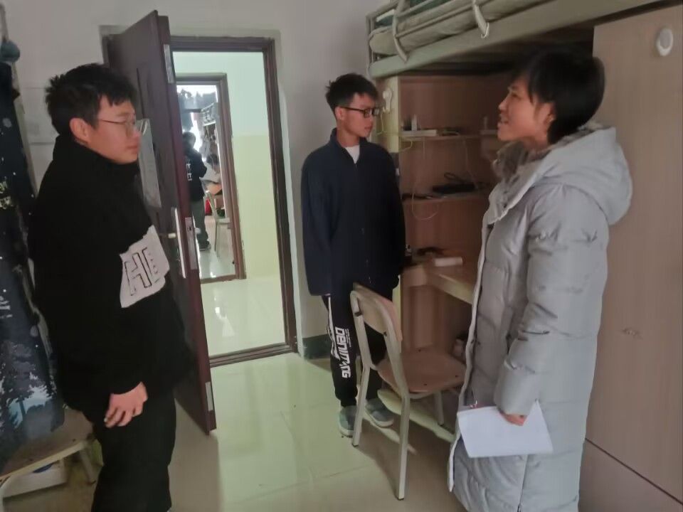 走访过程中,老师与员工们亲切交谈,提醒同学们新学期已经开始,新的规划指引新的方向与成长,希望大家及时收心,把精力放到提升自我上来。宿舍是大家学习、娱乐、休整的场所,爱护寝室,团结室友,遵守宿舍管理规定是每个人的责任与义务,希望同学们用真心换真情,打造和谐温馨的寝室环境。