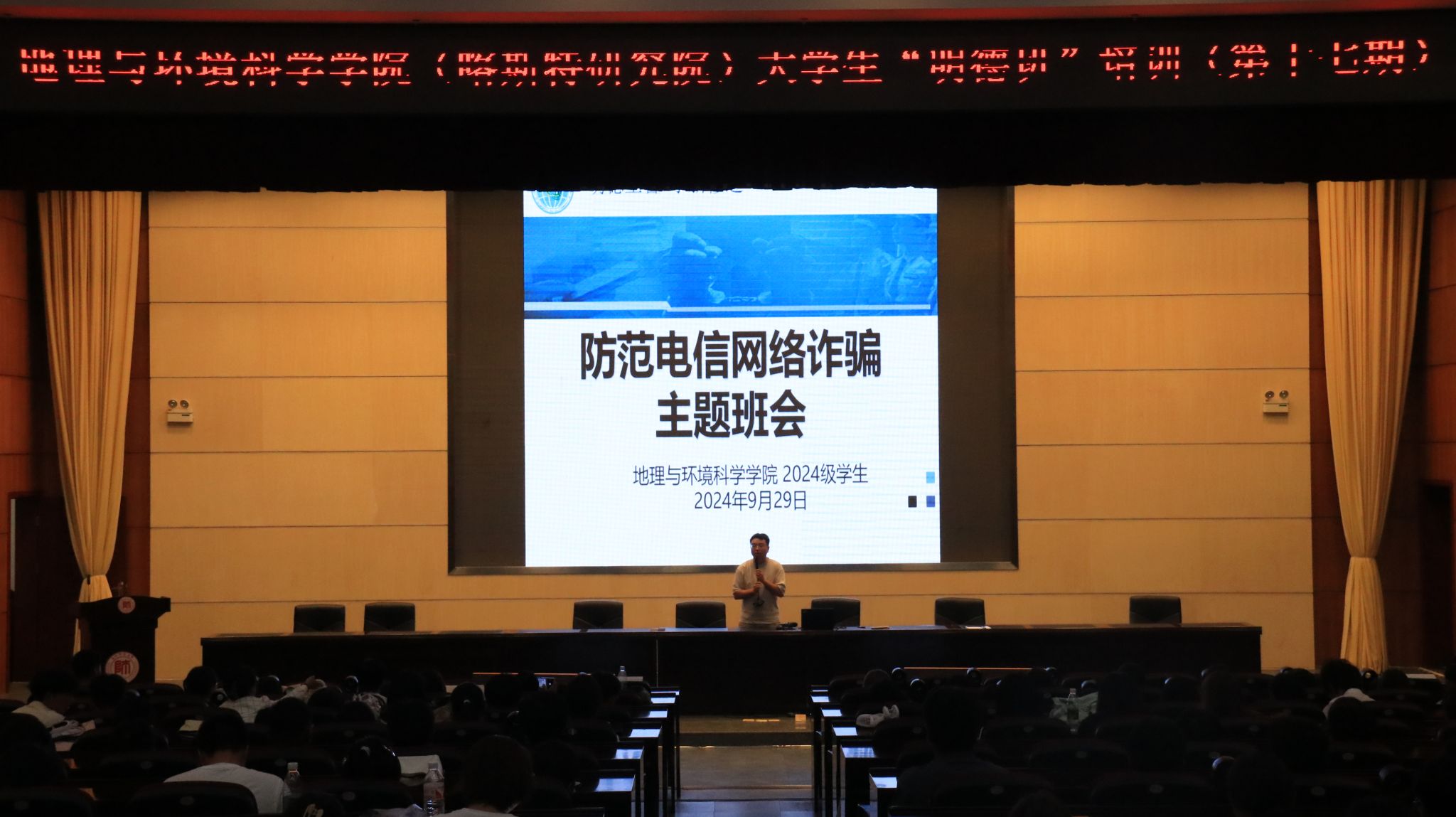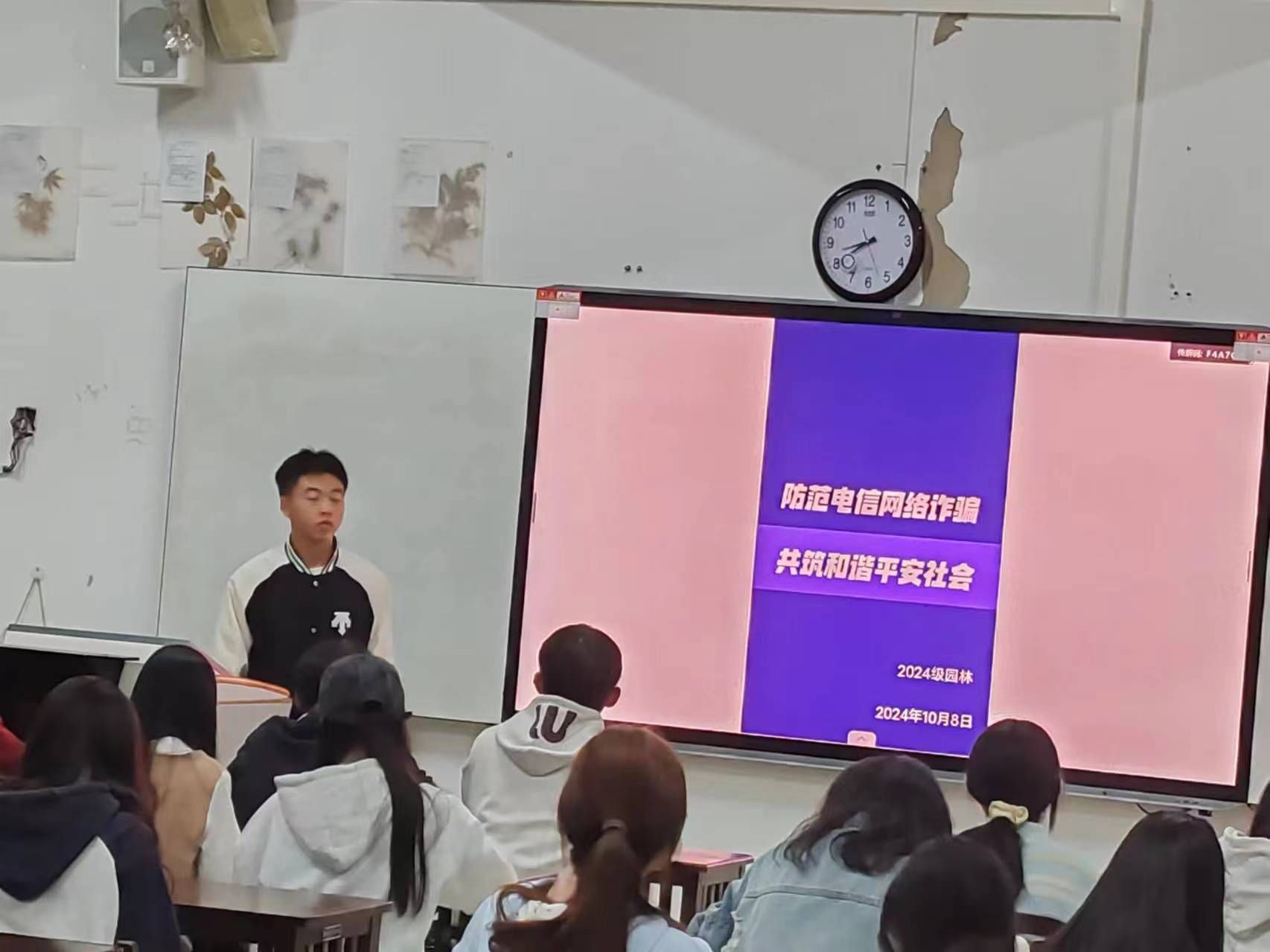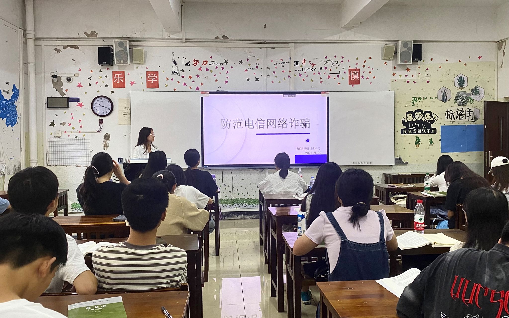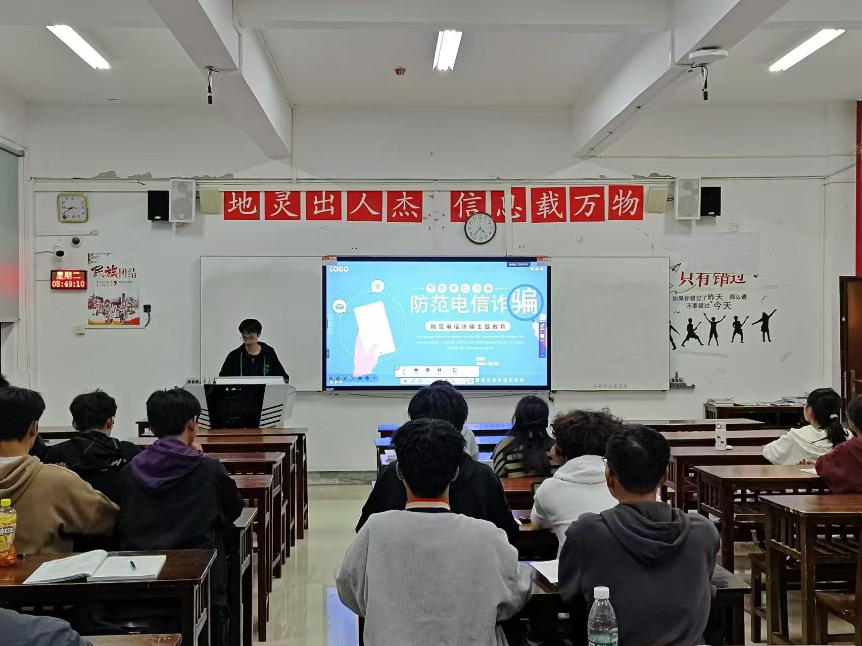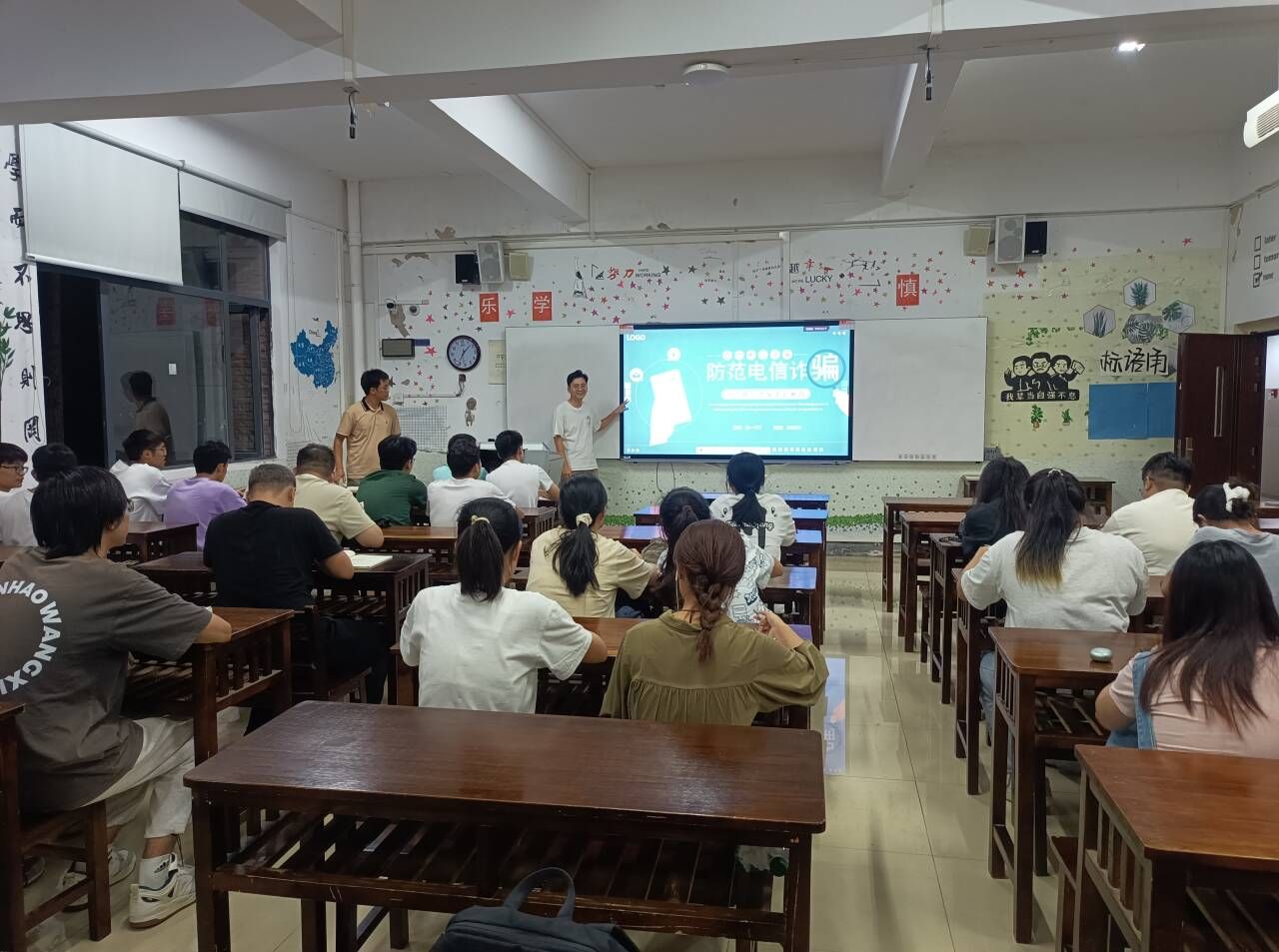 在各班辅导员组织下,各班通过主题班会向同学们阐释网络电信诈骗的定义,概述其手段与特点,并结合真实案例,向大家讲述电信网络诈骗的常见类型,揭示电信网络诈骗的巨大危害。引导同学们树立正确的消费观念,不轻信缴纳贷款保证金,不轻信“无担保无抵押贷款”等虚假贷款广告。希望同学们提高理性思维,将电信网络诈骗安全知识拓展到生活的方方面面,切实维护个人的财产安全。