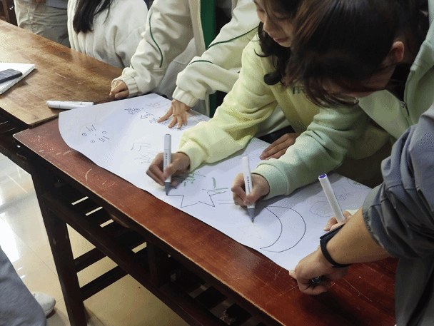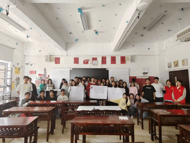 活动的最后一个环节——“四季之约与诗意共创”,志愿者们先将各班分成小组,每个小组内必须有分别出生在春夏秋冬的同学。接着,小组内讨论,用组内成员名字中的一个字,共创一首体现老员工活美好的诗。同学们发挥奇思妙想,一首首充满创意和温情的诗诞生,让同学们在创作中感受合作的魅力。