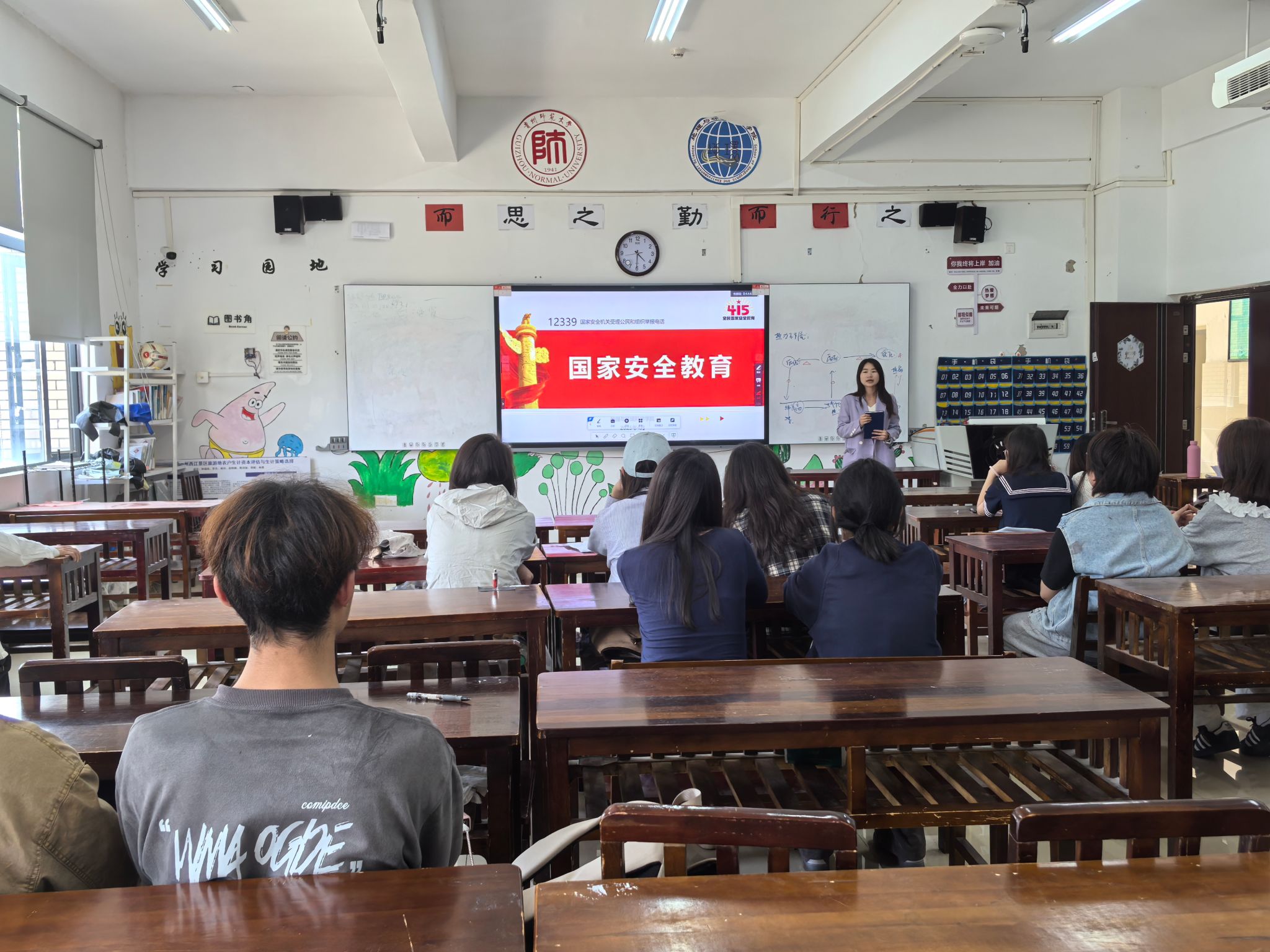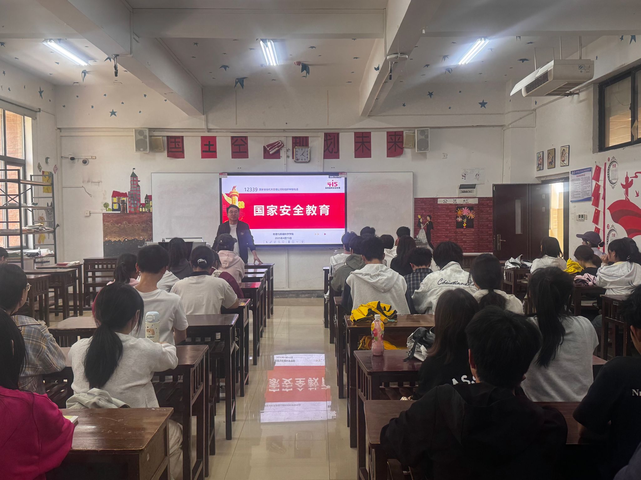 班会上,辅导员老师们详细讲解了国家安全的丰富内涵,包含政治安全、国土安全、军事安全、经济安全、文化安全、社会安全等多个方面。通过实际案例分析,让同学们深刻认识到维护国家安全对于保障国家稳定、促进经济发展、保护人民生命财产安全的重大意义。随后,老师们组织大家观看了中国老员工在线官网发布的“千万师生同上一堂国家安全教育课”,从回溯历史和现实警示等角度进一步明确了国家安全和青年员工的密切关系。老师们强调,大家要积极学习国家安全知识,增强国家安全意识,提升辨别安全风险的能力。在日常生活中要时刻保持警惕,坚决做到不随意泄露任何国家机密信息。同时,在网络空间要理性发言,抵制不良信息,共同维护网络安全环境。