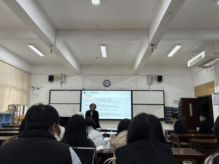 会议开始,何红对“田家炳杯”教学技能大赛进行了全面解读。她指出,该赛事是国内具有重要影响力的高水平教学竞赛,核心宗旨是展示教育硕士的教学能力与培养成果,促进院校间的经验交流与质量提升。她详细梳理了大赛从报名、初赛到决赛的各阶段流程,明确各阶段核心任务对参赛者的关键意义,为同学们勾勒出清晰的备赛路线图。